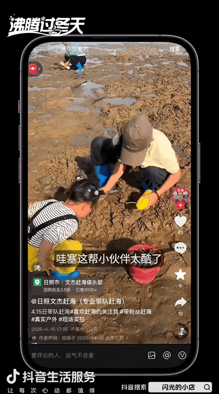 从通过私信接单到决定创业开店,对文杰来说最难的点在于:赶海在行,但做生意还得一步步摸索。但启发来得很快:他发布的一条退潮时抓海螺的视频爆火,希望“带玩”的网友越来越多。大家爱看、感兴趣,就愿意花钱来体验,有了客人就不愁没生意。抓住这点,文杰开始从一个赶海爱好者转变为商业赶海创业者。他开始有计划地经营抖音账号:大家爱看“夜间赶海”,那就做成系列主题视频吸引粉丝停留;直播要稳定,让粉丝亲眼看看海滩、潮水、海洋动物……用真实场景吸引用户种草和下单。