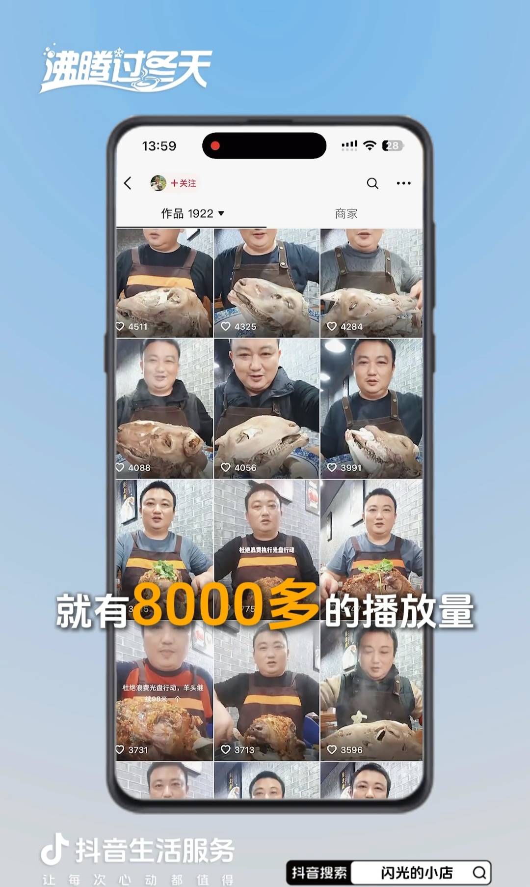 怎么才能帮小店解决“燃眉之急”?老余在抖音上意外找到了答案。有天没生意,老余录了一条吃羊蹄的视频发抖音,他不会说漂亮话,光顾着啃大羊蹄,没想到视频浏览量猛增,第二天顾客就找上了门。跟其他餐饮店账号相比,余记全羊馆发布的内容更新鲜,不光吃的东西小众,“老板亲自吃播”也成了话题。老余趁热打铁,陆续拍了很多吃播视频,他吃得香,羊肉品质也高,网友看了都夸菜品处理得干净。同城的人已经等不及要去店里尝尝,还有各地的网友问老余:“这些菜能不能寄快递?”